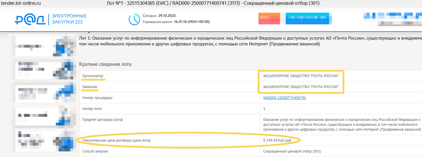 Однако факты свидетельствуют об обратном. Проверка доказывает, что госкомпания годами тратила на пиар гигантские суммы. Например, еще в 2019 году на так называемое "информирование населения" было выделено почти 800 млн рублей. И эта практика продолжилась в последующие годы, компания лишь сменила торговые площадки. Вместо главной ЕИС в сфере закупок (сайт zakupki.gov.ru) многомиллионные контракты на рекламу компании стали появляться на альтернативных, менее заметных для общесвтенности, ресурсах (rts-tender.ru, tender.lot-online.ru и др).