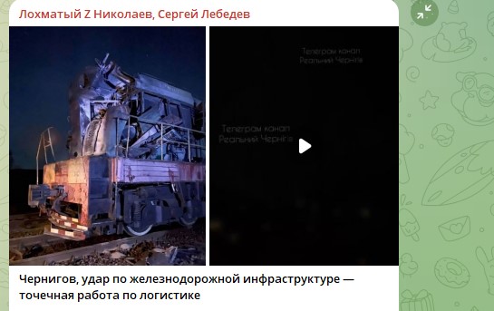 Кроме того, накануне вечером 3 беспилотника "Герань-2" нанесли удар по Северному железнодорожному вокзалу в Чернигове, а также удар был нанесён по железнодорожному узлу в Знаменке.