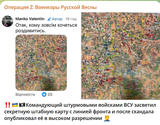Но дальше ещё лучше. Он случайно слил секретные карты украинского Генштаба в высоком разрешении, которые, мягко говоря, сильно отличаются от официальных сводок. Теперь украинцы спорят — предательство или глупость. Сам он прокомментировал свою публикацию в социальных сетях словами: "Тем, кому совсем хочется рассмотреть". Украинские СМИ сообщили, что карты оказались в том числе в Tik-Tok.