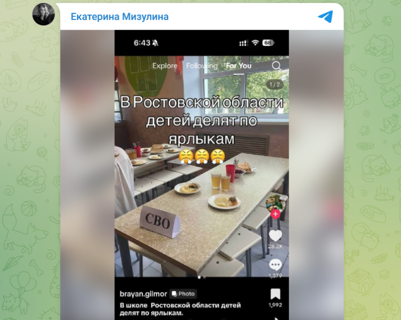 Травля в школах и без того тема трепетная. Возникает это явление частенько на пустом месте и по надуманным поводам: не так одет, не так посмотрел, чем-то отличается. Что же будет, если травлю начнёт провоцировать руководство школы? Это чуть не случилось в школьной столовой города Азова, куда пришли на обед дети и первым делом увидели "кастовое разделение": вот тут стол для малоимущих с соответствующей табличкой, чтобы к "нормальным" не сели, а тут — для тех, у кого папа на СВО.