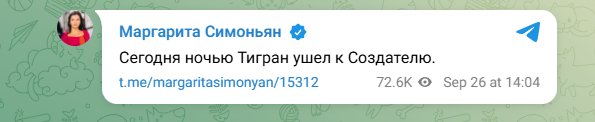 ФОТО: Скриншот https://t.me/margaritasimonyan