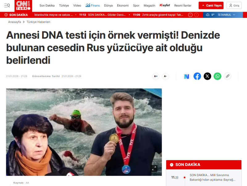 29-летний пловец, кандидат в мастера спорта, пропал 24 августа прошлого года во время массового межконтинентального заплыва через Босфор, где участвовали около трёх тысяч человек. Активные поиски продолжались несколько месяцев и были официально прекращены в конце октября, однако расследование обстоятельств инцидента не останавливалось. Обнаруженное тело находилось недалеко от точки финиша того самого соревнования.