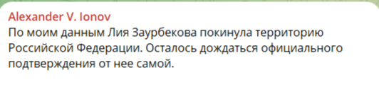 Потом член Совета по правам человека при президенте России Александр Ионов сообщил, что Заурбекова могла уже покинуть Россию.