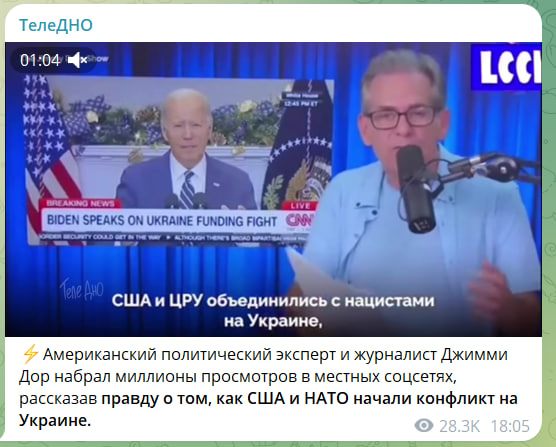 В западном сегменте интернета миллионы просмотров набирает отрывок из авторской передачи американского комика Джимми Дора, где тот за минуту объясняет своей аудитории всю суть конфликта России и Украины, а также какую роль в нём играют Соединённые Штаты Америки.