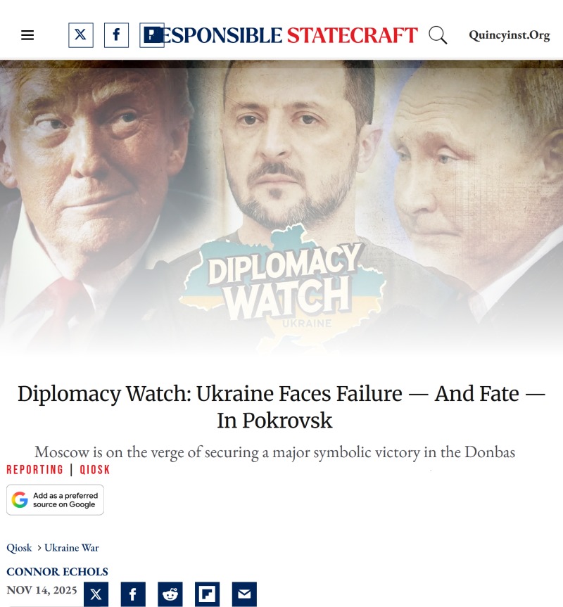 Скриншот статьи "Украина столкнулась с неудачей – и судьбой – в Покровске"/Responsible Statecraft