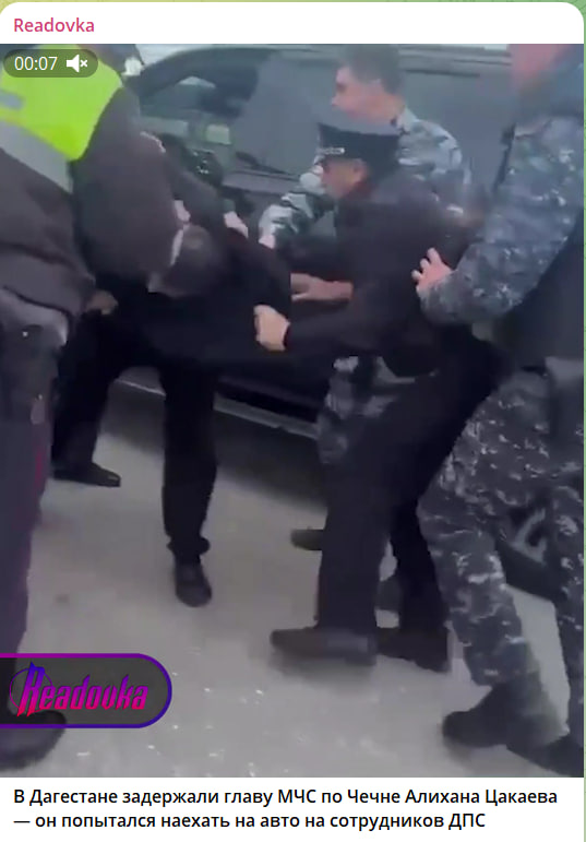 Министр МЧС Чечни Алихан Цакаев, по некоторым данным, был пьян. Он пытался наехать на автомобиле на сотрудников дорожной полиции.