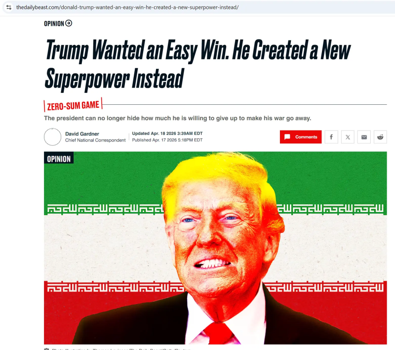 Автор указывает: Трамп не просто не устранил угрозу — он превратил заклятого врага США в глобальную сверхдержаву. И мир от этого оказался в куда большей опасности. А Тегеран, что бы там ни говорил Трамп, не сдался после первого залпа "Томагавков", сколько бы лидеров ни погибло. Упрямо не отдаёт Ормузский пролив. Почему так происходит? Вероятно, потому что десятилетиями готовился к такому удару, полагает автор статьи.