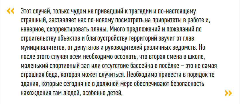 Свои слова он адресовал представителям всех основных ведомств, в чьём ведении есть объекты с массовым пребыванием людей. Но в первую очередь глава региона указал, что следует обратить внимание на учреждения образования, так как там постоянно находятся дети.