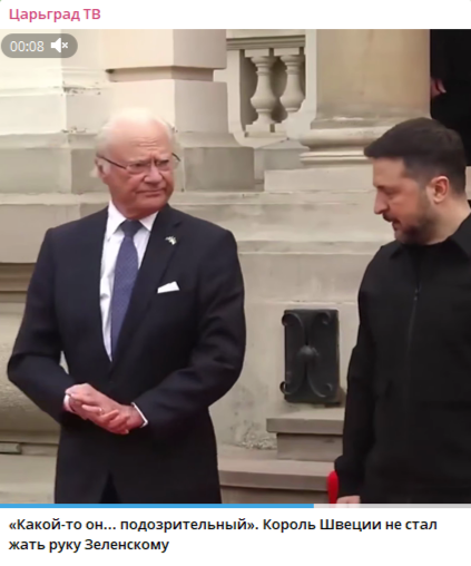 Карл XVI Густав публично нарушил протокол, когда не стал жать протянутую Зеленским руку. Он даже немного отстранился и невольно поморщился, наградив Зеленского брезгливым взглядом.