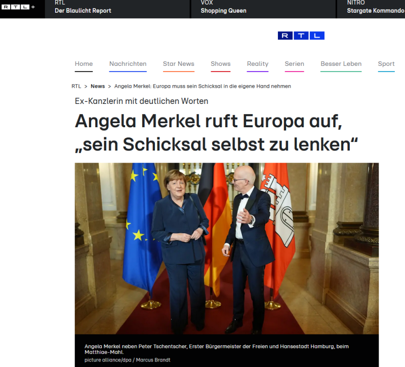 Бывший канцлер Германии Ангела Меркель выступила с призывом к Европейскому союзу активизировать собственную дипломатию в отношении России и снизить зависимость от Соединённых Штатов в вопросах урегулирования конфликта на Украине. С такой речью политик выступила 7 марта на традиционном ежегодном приёме Matthiae-Mahl в ратуше Гамбурга.