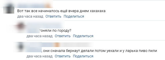 В комментариях к новости, опубликованной в паблике "АСТ-54" в соцсети "ВКонтакте", появились свидетели, которые якобы видели красный автомобиль ранее. В частности, как его экипаж накануне выполнял на своём авто "бёрнаут" – приём из экстремального вождения. После этого молодые люди распивали пиво у ларька.