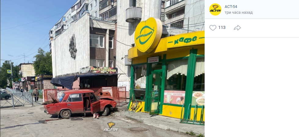 Автомобиль ВАЗ красного цвета протаранил павильон фастфуд-кафе "Подорожник" в Калининском районе. Авария произошла в воскресенье, 5 июня, в 10:38, уточнили в группе пропаганды ГИБДД по Новосибирску.