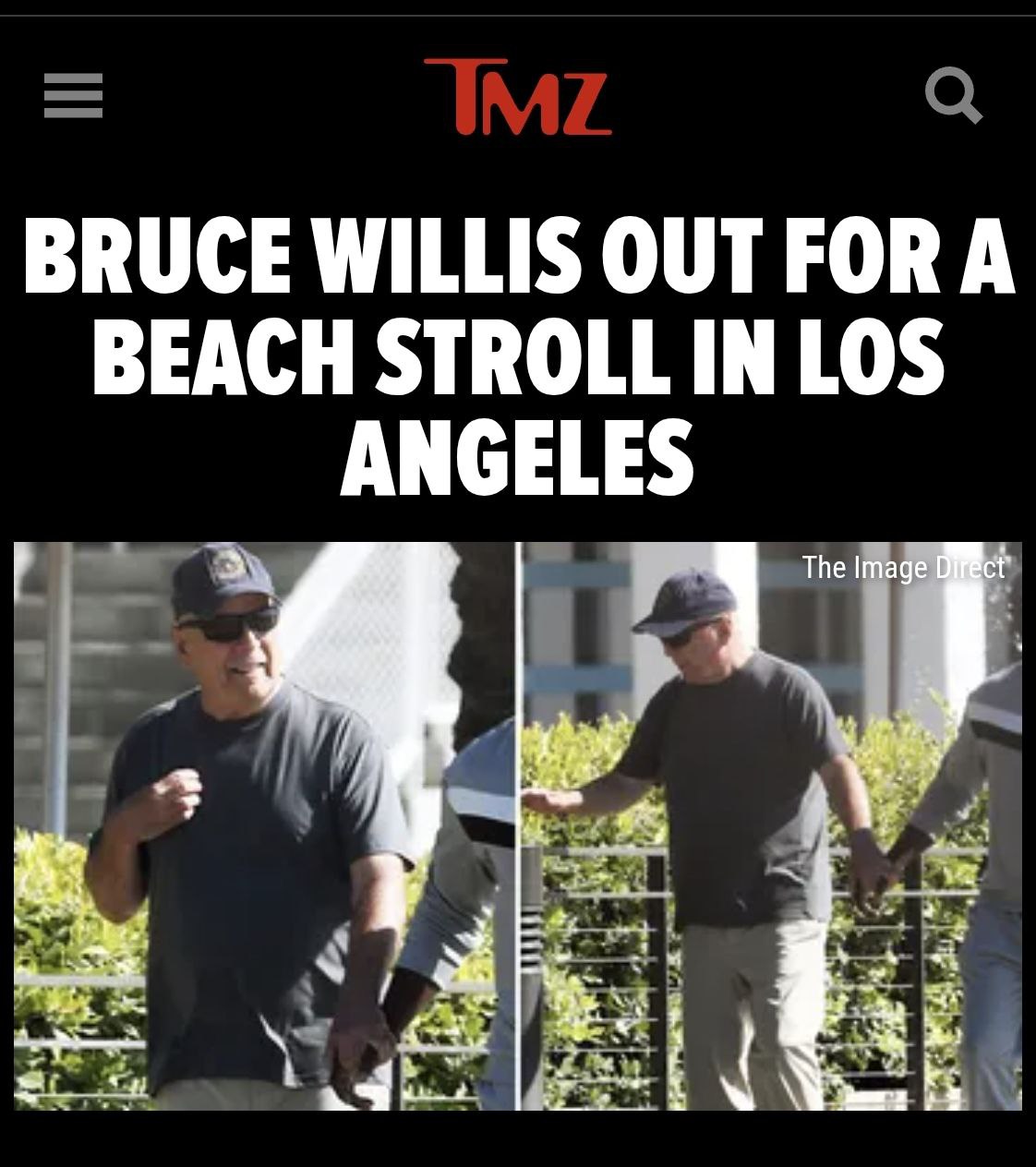 Портал TMZ опубликовал фотоснимки знаменитого голливудского актёра и музыканта Брюса Уиллиса, которые были сделаны недавно во время прогулки в Лос-Анджелесе. Издание отмечает, что несмотря на выявленную ранее лобно-височную деменцию, которая считается очень опасным и неизлечимым заболеванием, Уиллис выглядел отлично. "Похоже, Брюс процветает", - написал TMZ.