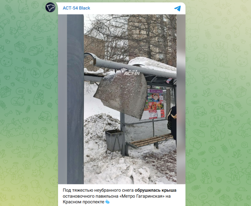 Крыша остановочного павильона около метро Гагаринская обрушилась в Новосибирске