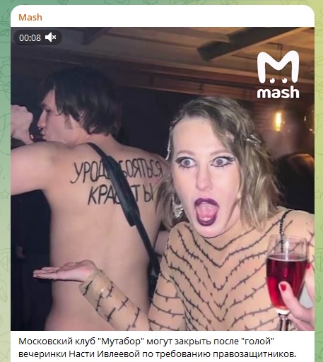 Речь идёт о вечеринке в ночном клубе "Мутабор". На фото и видео с мероприятия видно, что его участники распивают алкоголь и отплясывают в полуобнажённом виде. Один из гостей и вовсе появился на празднике в одном носке, надетом на половой орган.