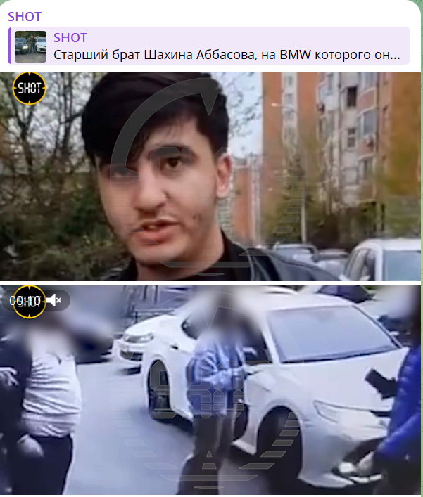 В кадр, в частности, попал чёрный "БМВ", на котором скрылись нападавший и его брат.