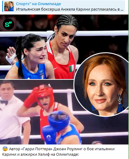 "У молодой женщины-боксера было отнято все, над чем она работала и тренировалась. Все потому что вы позволили мужчине выйти с ней на ринг. Вы — позор, ваша защита — шутка, Олимпиада в Париже навсегда будет запятнана жестокой несправедливостью, нанесенной итальянской спортсменке", — высказалась Роулинг.