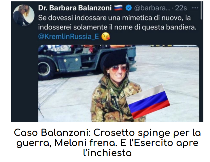 Расследование началось после того, как ранее Баландзони разместила снимок, сопроводив его комментарием о готовности носить военную форму исключительно под знаменем России.