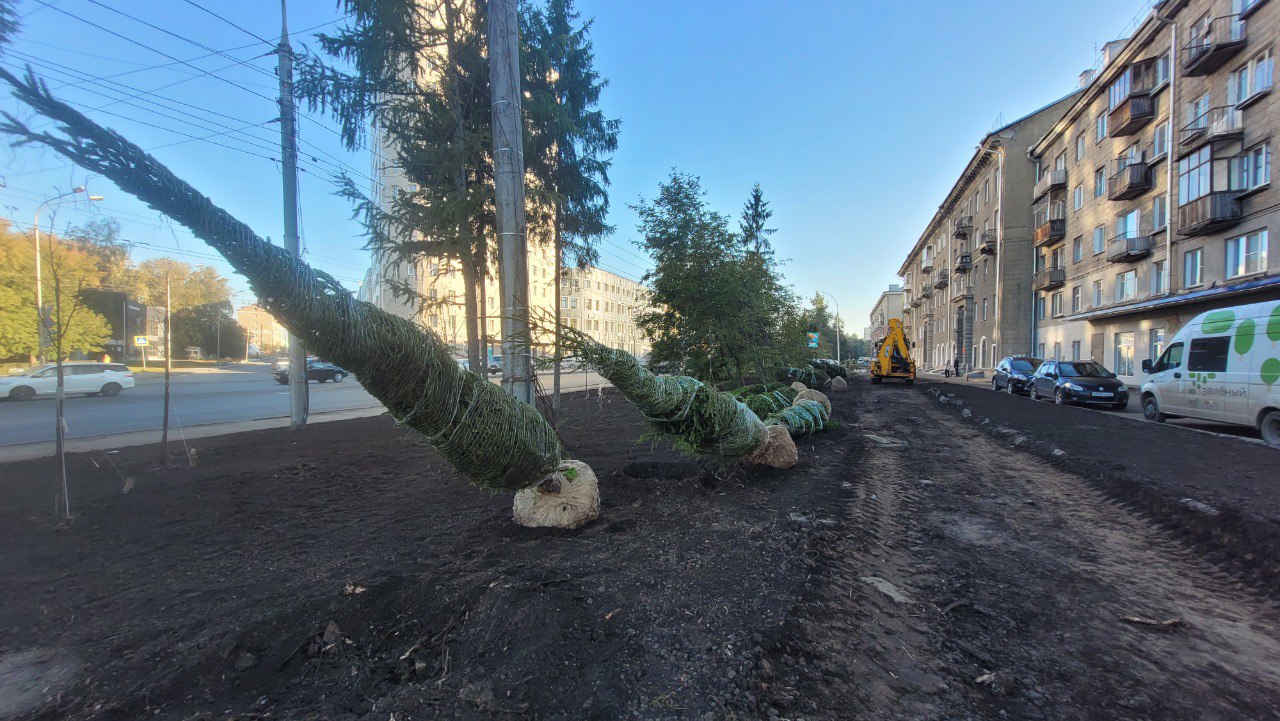 На проспекте Дзержинского в Новосибирске высадили московские ели