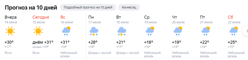 Самым холодным днём недели станет среда, 19 июня. Синоптики обещают всего +16 градусов.
