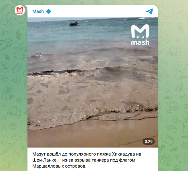 Тяжёлые фракции нефти от судна, пострадавшего в результате удара в Ормузском проливе, достигли западного побережья Шри-Ланки. Загрязнение зафиксировано в районе Хиккадувы – одного из самых посещаемых мест среди любителей сёрфинга и дайвинга. Отдыхающие из России делятся кадрами маслянистой плёнки и чёрных сгустков на песке.