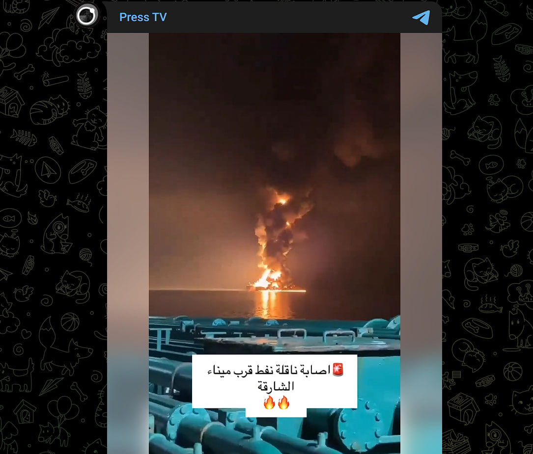В субботу, 14 марта, стало известно о том, что в районе города Шарджа в ОАЭ загорелся американский танкер. Об этом сообщил телеканал Press TV. Согласно видео в телеграм-канале телеканала, судно подверглось нападению.