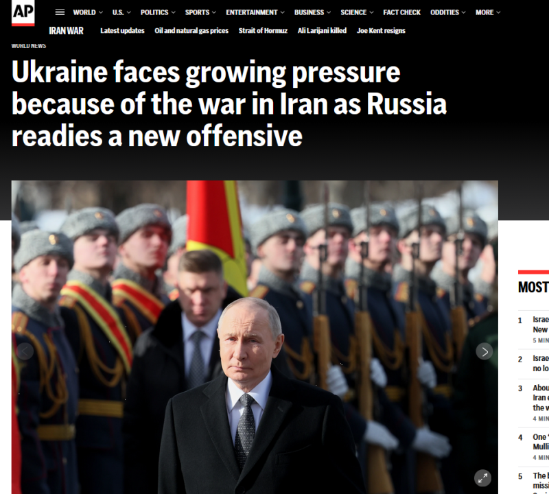 В публикации подчёркивается, что складывающаяся ситуация играет на руку Москве. Рост цен на нефть пополняет бюджет, а конфликт в Персидском заливе отвлекает ресурсы западных союзников. Глава киевского режима Владимир Зеленский в интервью Би-би-си (BBC) выразил опасения по этому поводу, заявив, что у него "очень плохое предчувствие". Он отметил, что переговоры о мире постоянно откладываются по причине войны в Иране, и предрёк возникновение дефицита ракет, в том числе для систем Patriot, поскольку американские арсеналы активно расходуются на Ближнем Востоке.