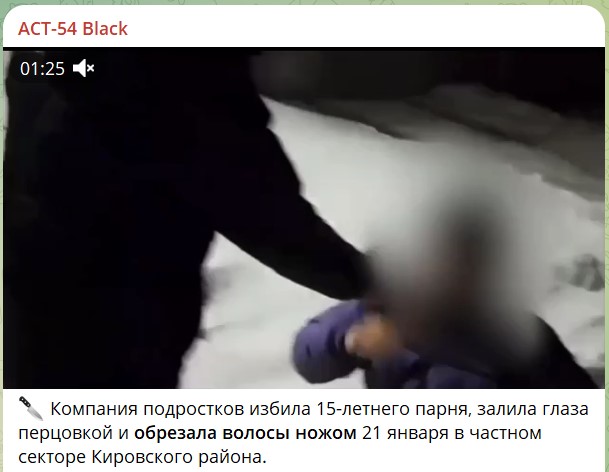В Новосибирске подростки устроили групповое избиение мальчика на территории частного сектора в Кировском районе. Подростку срезали часть волос с головы и залили глаза перцовым баллончиком. Всё происходящее нападавшие сняли на видео, которое попало в сеть. Оно опубликовано в телеграм-канале "АСТ-54 Black".