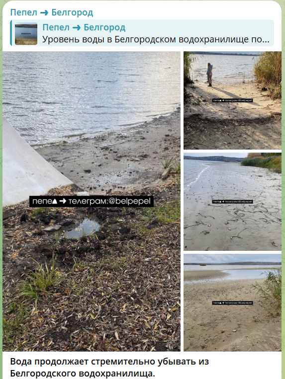 После того как Украина атаковала плотину в Белгородском водохранилище, уровень воды начал падать. В результате этого затопило несколько сел ниже по течению реки. На видео, которое опубликовано в телеграм-канале "Пепел Белгород", видно, как вода отступает от берегов.