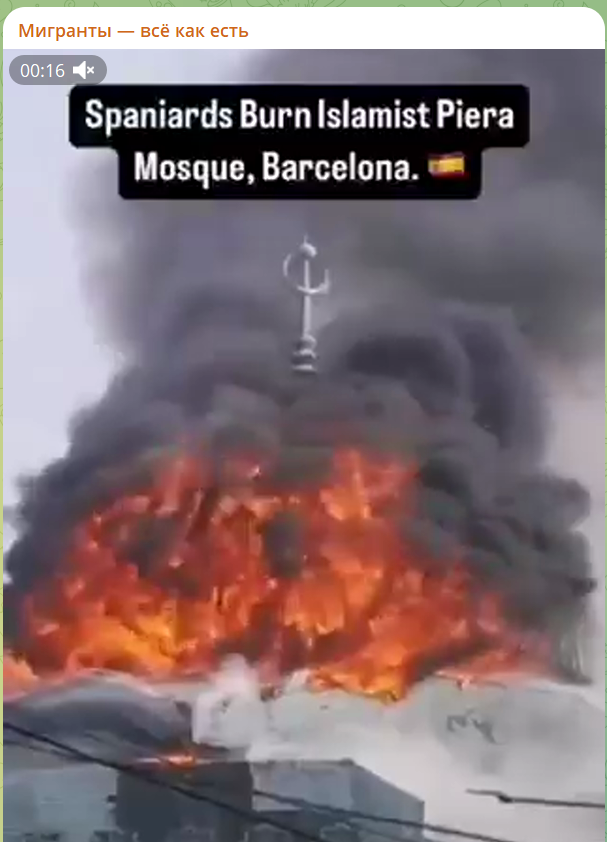 В испанской провинции Барселона сгорела крупнейшая мечеть. Полиция подозревает поджог