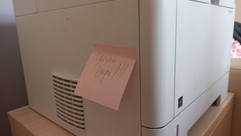 В организациях города Новосибирска также стали экономить бумагу и печатать неофициальные документы с двух сторон. Чтобы не перепутать, какой стороной загружать бумагу в принтер, на одном из устройств была замечена забавная надпись: «Грязью вверх!».