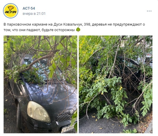 Жительница Новосибирска пожаловалась на падающие деревья, царапающие припаркованные машины во дворах жилых домов.