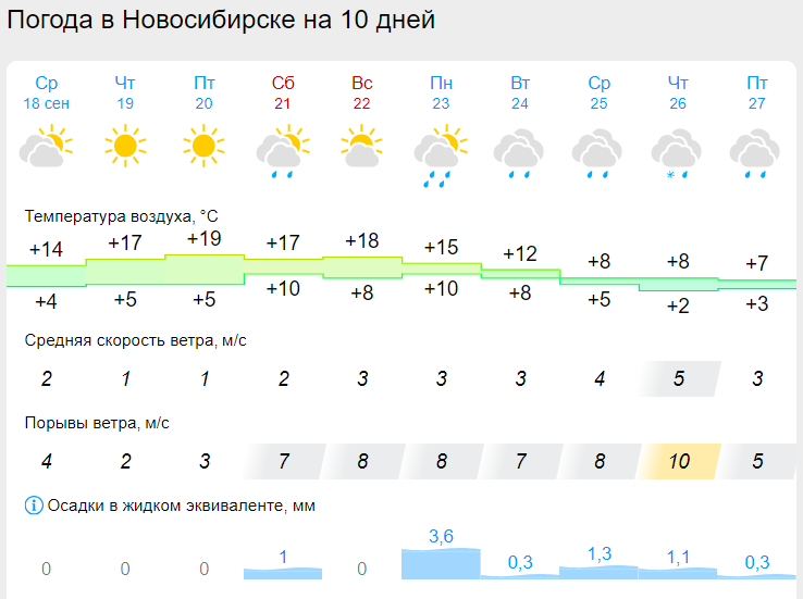 Сервис Гисметео тоже прогнозирует потепление до +19 градусов в пятницу, 20 сентября. Дождик будет только в субботу.