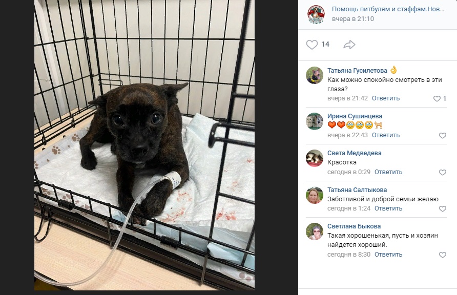 Ей начали искать хозяев, но в комментариях под постом о Дине в группе "Помощь питбулям и стаффам. Новосибирск" написала девушка Евгения, что приняла решение ехать за собакой и взять её себе.