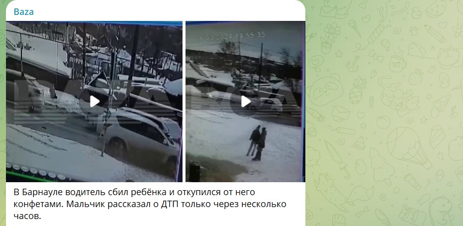 В Барнауле на улице Кутузова водитель белого внедорожника сбил мальчика и скрылся с места происшествия, оставив ребёнку коробку конфет.