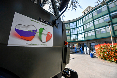 "Из России с любовью": Весной 2020 русские военные и врачи помогли Италии справиться с волной коронавируса. Фото: Claudio Furlan/Globallookpress
